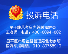 星干線藝考店內糾紛和解員:王老師 電話:400-0094-002|